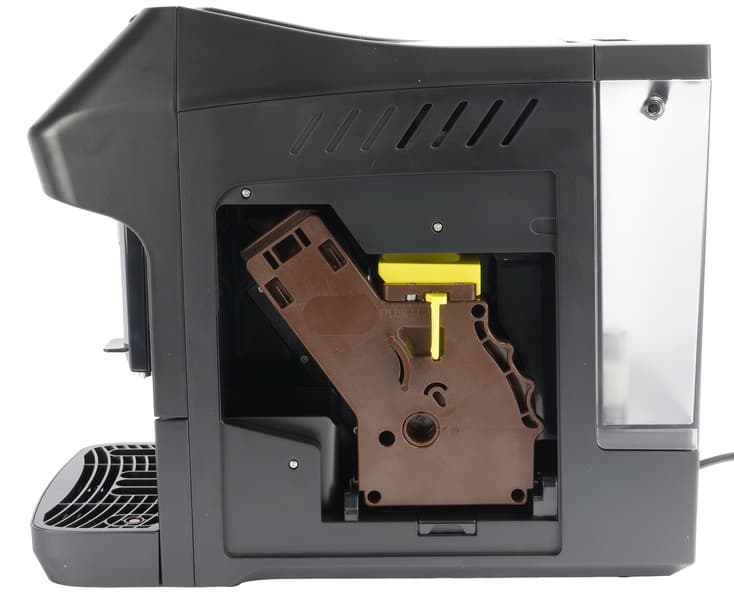 Отметим, что у данной модели нет датчика отсутствия контейнера для отработанного кофе. Если мы забудем его установить, то отходы будут сбрасываться прямо в дренажный поддон для воды. Не очень страшно, но и не особо приятно.