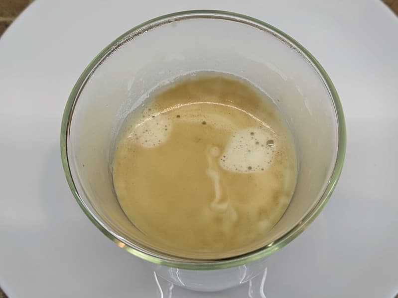 А вот та же пена, перелитая в другую емкость. На фото мы уже добавили эспрессо и получили капучино.