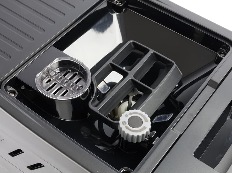 Таким образом мы получаем доступ к заварочному блоку, контейнеру для отработанного кофе и поддону для молотого кофе, просыпавшегося в процессе приготовления.