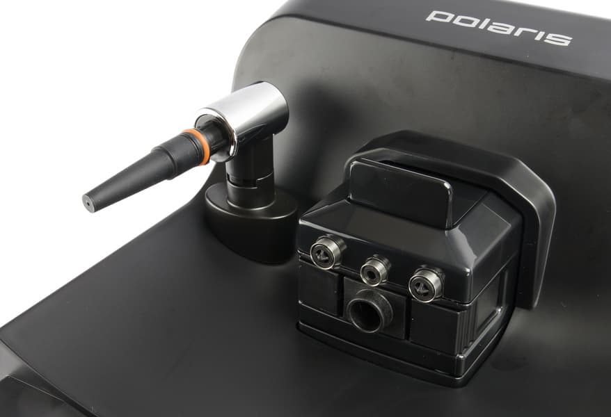 А никак. Это обман зрения. А точнее — явные следы от старшей модели, которая была урезана в своих функциях. В итоге капучинатор, встроенный в диспенсер, был попросту заблокирован резиновой заглушкой. Забегая чуть вперед, скажем, что кран подачи воды в диспенсере не используется.