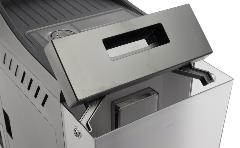 Даже крышки бака для воды и отсека для кофе выглядят естественно. Не секрет, что именно они почему-то нередко портят внешний вид даже довольно дорогих моделей.