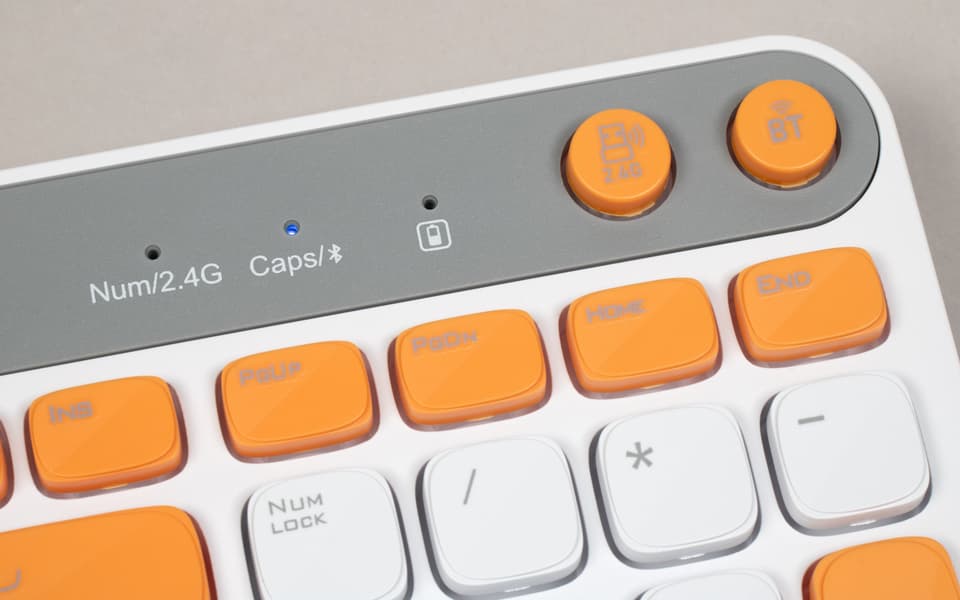 Что касается интерфейсов, многие современные контроллеров «тянут» до трех независимых каналов, что позволяет переключать клавиатуры между тремя устройствами — плюс четвертое на «фирменном» радиоинтерфейсе с частотой 2,4 ГГц. Здесь это сочтено избыточным, так что BT-канал всего один — и одновременно сопряженных устройств два. Зато переключение между ними очень удобное — никаких горячих клавиш. Просто две выделенные — для собственного ресивера и Bluetooth, так что переходить с одного на другое можно и практически вслепую.