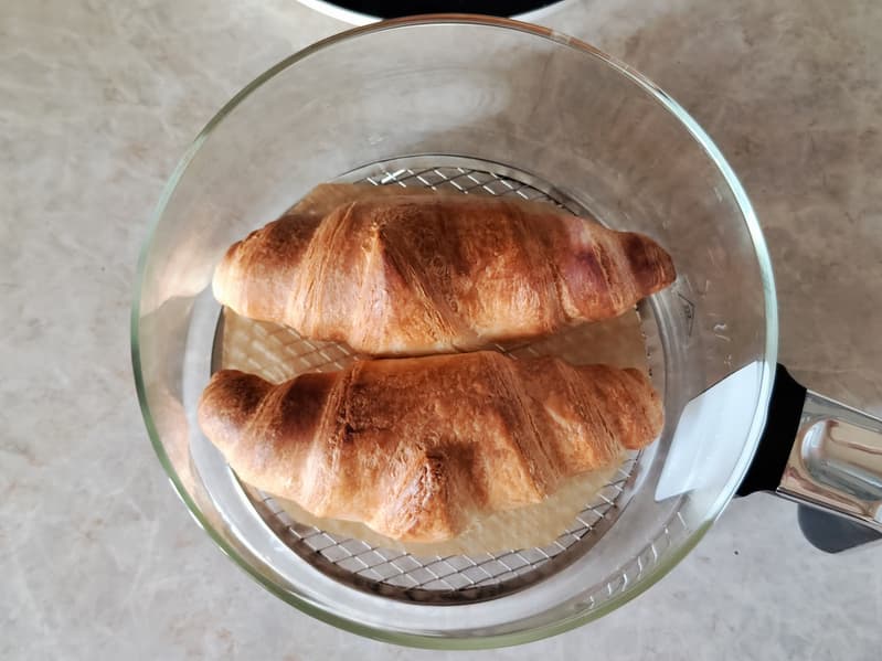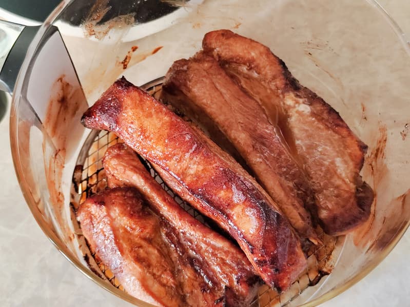 Мы готовили в этом приборе картофель-фри, крупные свиные ребра, круассаны, свиную шею, запеченные яблоки. Результаты были хорошие — там, где требовалось перевернуть продукты или добавить времени приготовления, и отличные — там, где мы сразу правильно выставили режим, опираясь на уже полученный опыт. Отметим, что необходимость переворачивать или встряхивать кусочки продуктов обусловлена конструкцией прибора и его ультракомпактными габаритами.