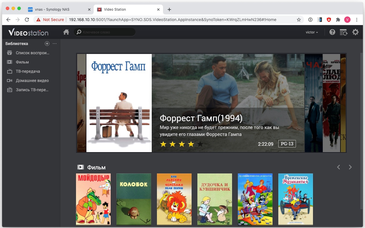 Video Station помогает управлять видео коллекцией: фильмами, телепередачами и собственными видеороликами, сохраненными в Synology NAS.