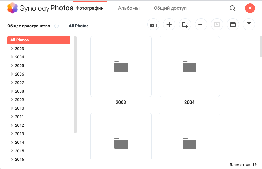 Synology Photos в браузере