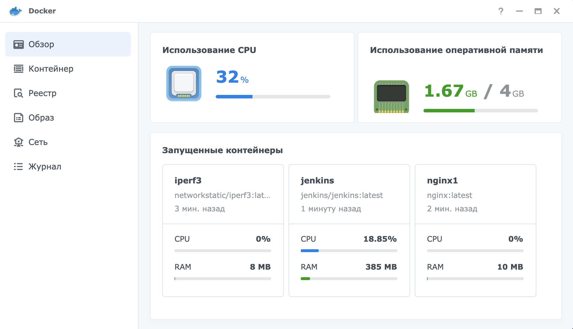 Мониторинг ресурсов системы и запущенные контейнеры