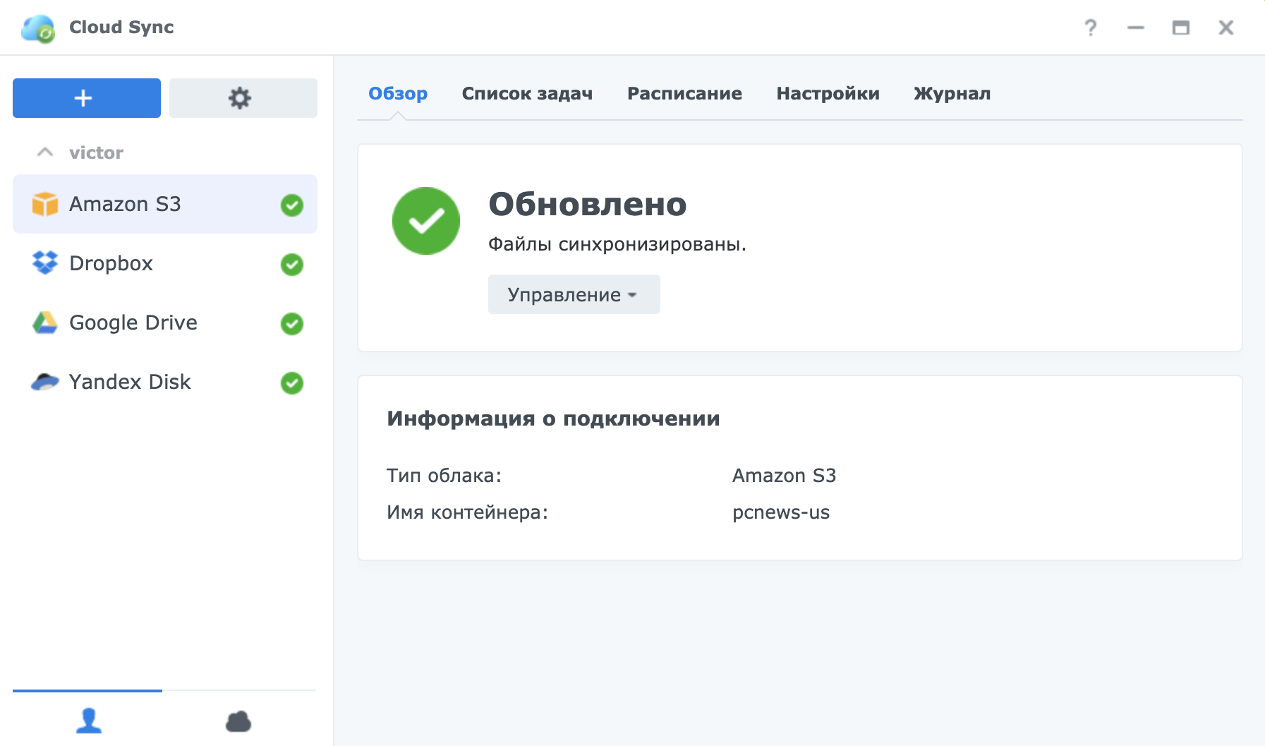 Cloud Sync позволяет синхронизировать файлы между Synology NAS и популярными облачными службами, такими как Yandex Disk, Dropbox, Google Drive, Amazon Drive, Google Cloud Storage, Microsoft Azure, OpenStack Swift и др. Таким образом, данные будут храниться как в публичном облаке, так и на Synology NAS. В результате можно получить все разрозненные по облакам данные локально на своем личном NAS. Это очень удобно.