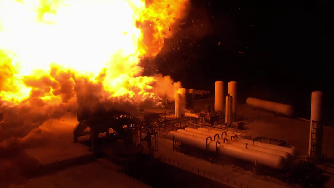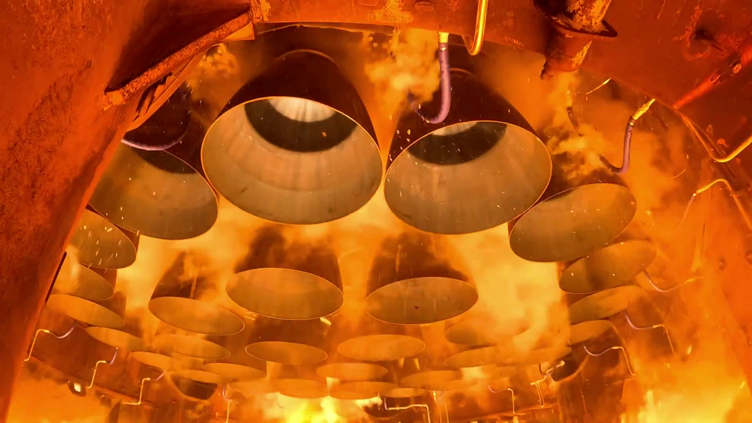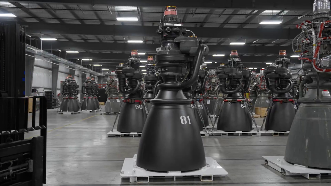 Огневой тест Starship V3. Скриншот видео SpaceXОтдельный блок был посвящён текущей тестовой кампании. SpaceX показала кадры разрушения Booster 18, а затем — испытаний Booster 19. Как и ожидалось, оба прожига — сначала на 10 двигателях Raptor 3, затем на 33 — были прерваны раньше времени. Первый тест оборвался примерно через 2,135 секунды из-за проблем с датчиками на стартовой площадке, при этом часть двигателей получила повреждения. Во втором случае прожиг также остановили из-за проблем с датчиками, уже в системе подачи воды для газоотвода. Для второго прожига и последующего полёта на B19 использовали 33 двигателя, включая часть из резерва, выделенного для Super Heavy B20.
