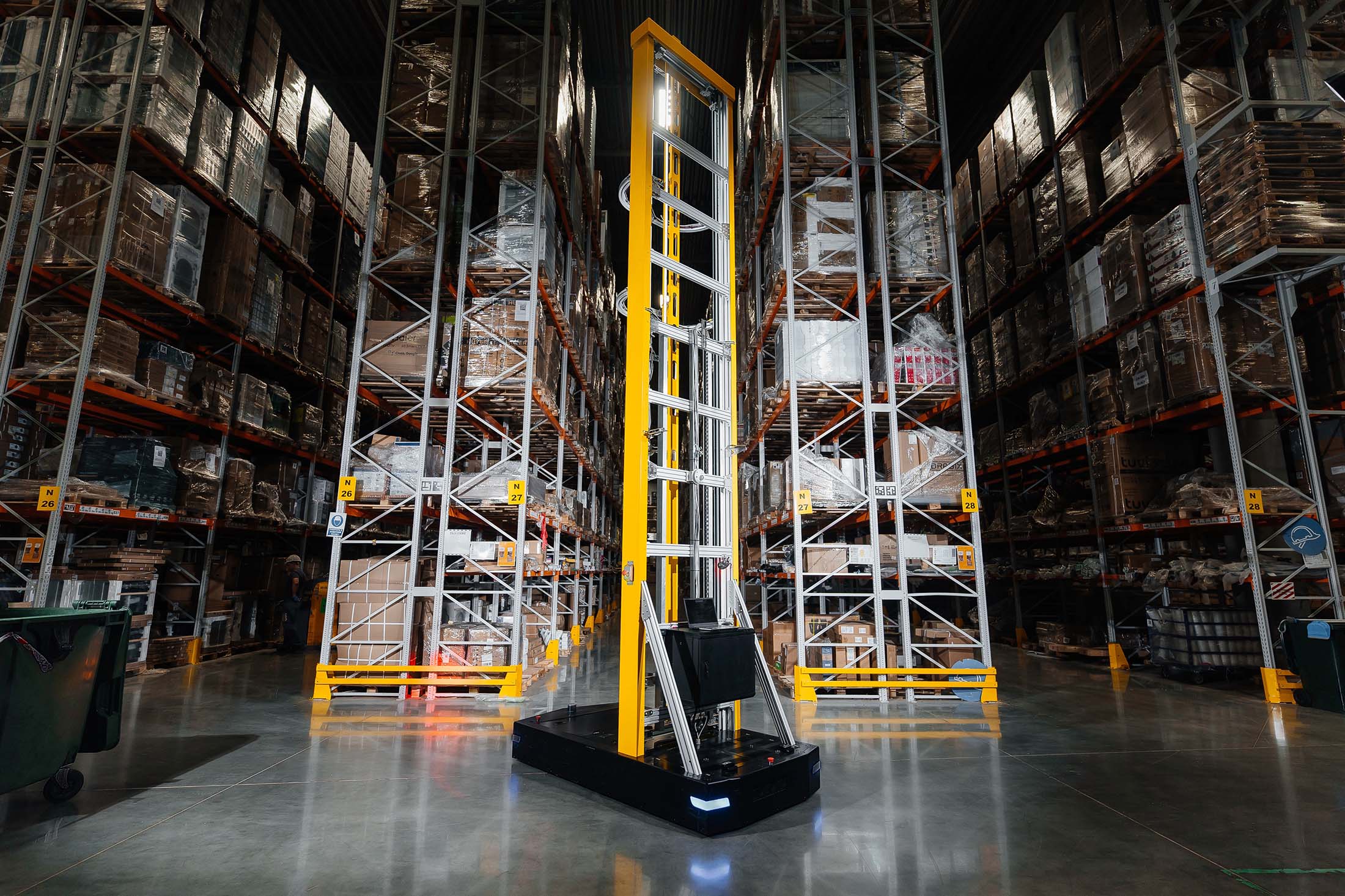 Роботы-инвентаризаторы Яндекс Роботикс работают в распределительном центре автономно. Они двигаются между стеллажами, сканируют товары и направляют данные в систему управления складом (WMS). Это позволяет автоматически сверять палеты с товарами и оперативно вносить корректировки при несоответствиях. Роботы оснащены лидаром, камерами, ультразвуковыми сенсорами, а также датчиками для обеспечения безопасности.